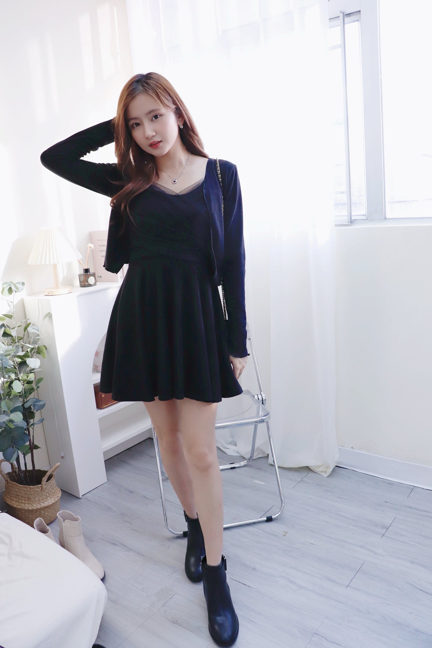 橡筋腰絨面Ruffle裙